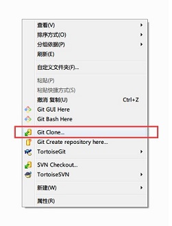 在windows本地机上打开一个文件夹,空白处右击鼠标,选择git clone:(图-2.5)