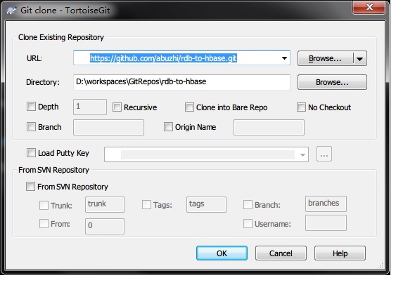 以GitHub 为例:登录github帐号后,new repository,新建一个仓库。然后复制连接(比如:https://github.com/abuzhi/rdb-to-hbase.git),